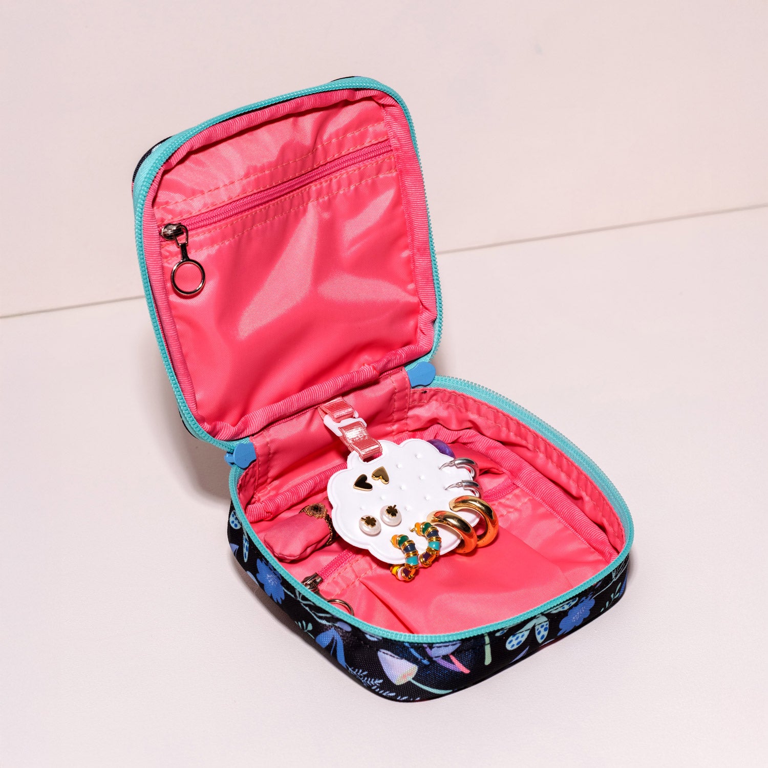 Súper compacto y ligero. Organiza anillos en la almohadilla, aretes en la nube y collares en los bolsillos. Cabe fácil en el bolso o la maleta y no ocupa espacio de más.